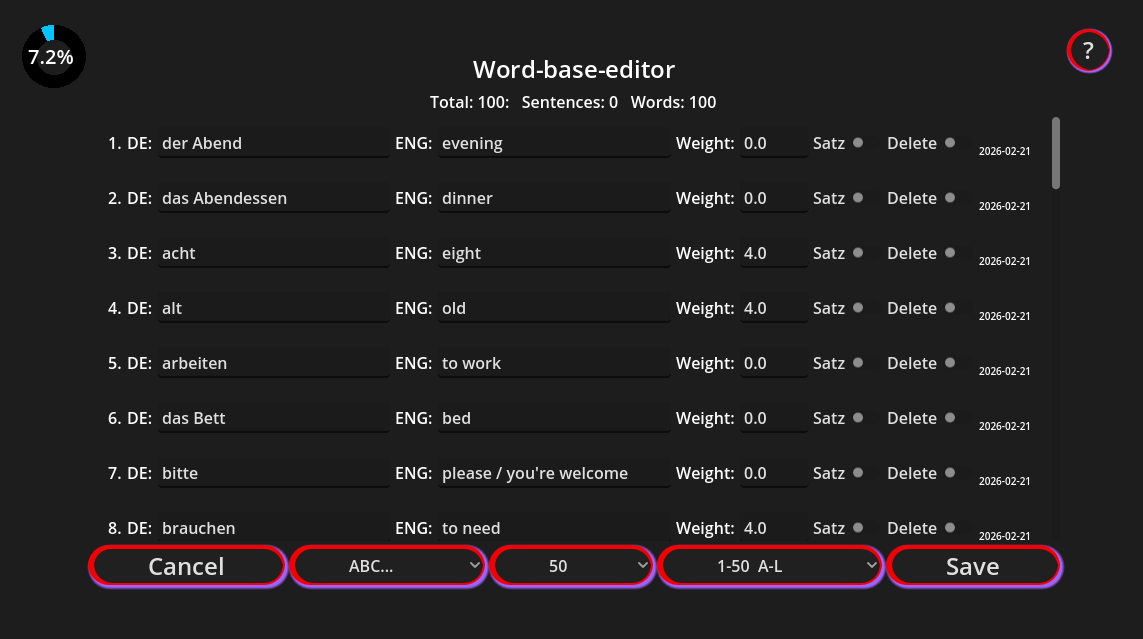 But that’s not all. If you find a list of words separated by dashes (for example: die Katze – cat, der Hund – dog), you can paste the whole list into the “original” field and the app will automatically split each line for you. No need to create every flashcard manually — you’ll save a lot of time.
